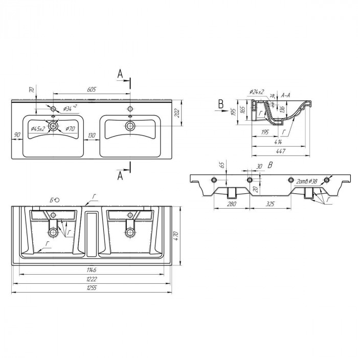 Раковина Dreja Harmony 641938, 125 см