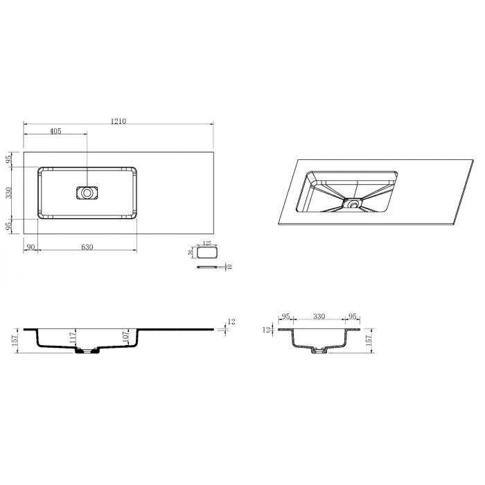Раковина-моноблок Armadi Art WHITE QUATRO 120 (асимметричная) 120 см акрил 793-120-W-A