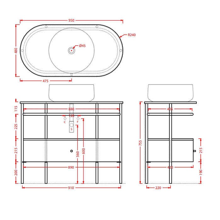 Консоль металлическая Artceram Flair 4.0 ACA068 17 Черный матовый Artceram FLAIR 4.0 Консоль металлическая 95x48хh75см для настольных раковин, цвет черный матовый