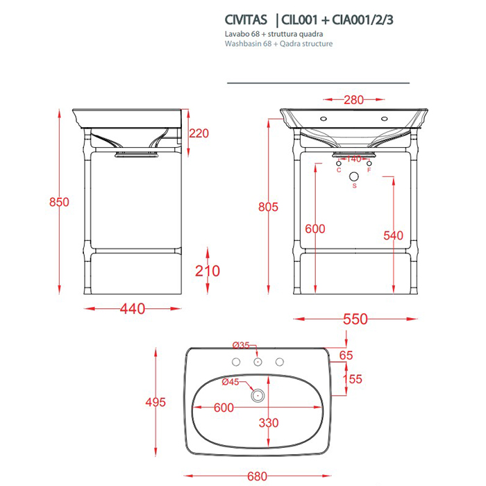 Консоль металлическая Artceram CIVITAS CIA003 71cr Хром Artceram CIVITAS Структура металлическая Quadra для раковины 68 см, полка стекло, цвет хром