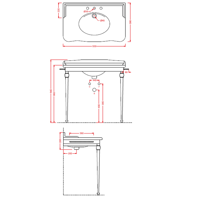 Раковина под консоль 92х58см Artceram HERMITAGE HEL005 01 00*1 Хром