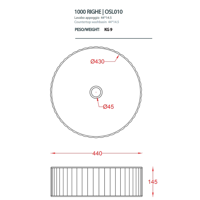 Раковина Artceram MILLERIGHE OSL010 17 00 Черный матовый Artceram MILLERIGHE Раковина накладная,Ø44,5хh14,5см, без отв под смеситель, без перелива, цвет: черный матовый