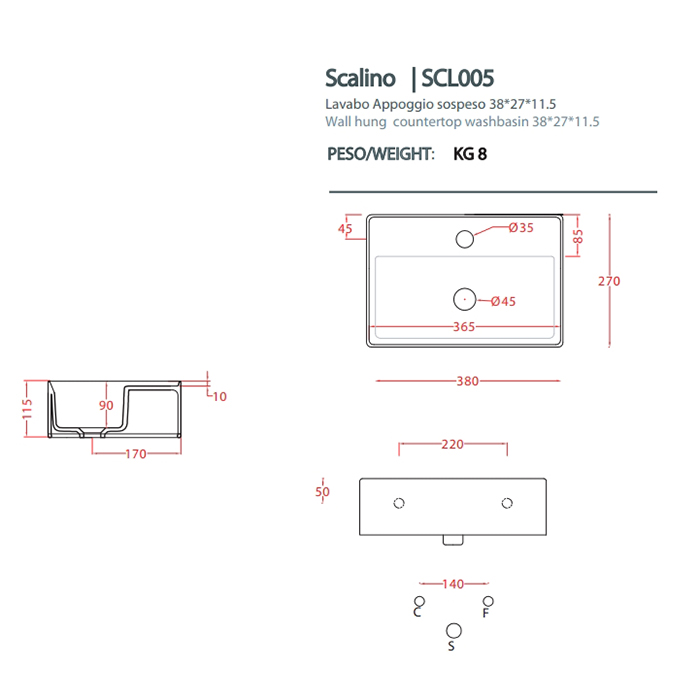 Раковина Artceram Scalino SCL005 01 00 Белый Artceram SCALINO Раковина накладная 38х27 см, с 1 отв под смеситель, без слив перелива, цвет белый.