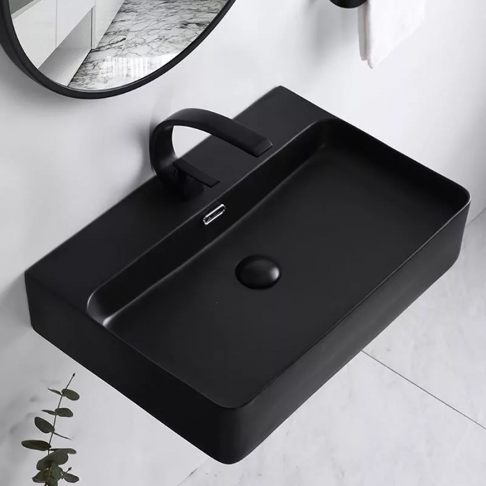 Раковина Ceramalux 8145MB черный матовый Фаянс прямоугольная современный стиль 2 год