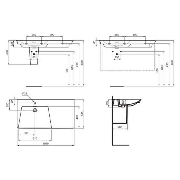 Раковина Ideal Standard La Dolce Vita E264601 Белый Ideal Standard La Dolce Vita Раковина подвесная 106х53.5см, sx, с 1 отв, цвет: белый