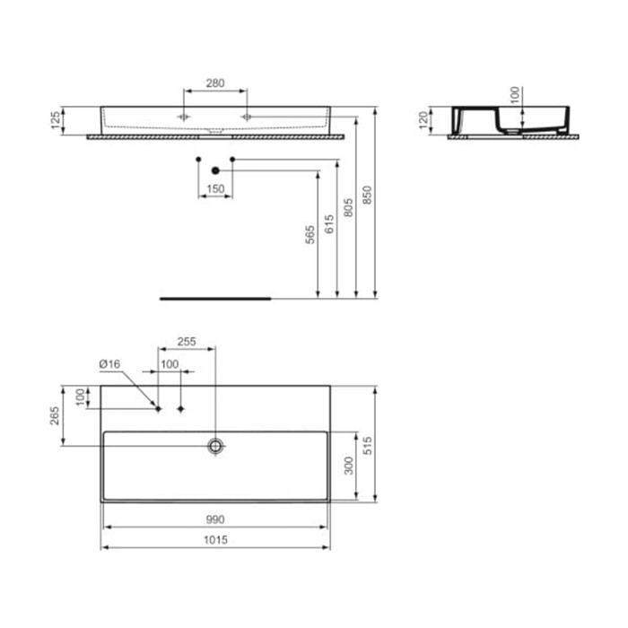 Раковина Ideal Standard Solos T537001 Белый Ideal Standard Solos Раковина подвесная 100х50см, с 2 отв, без перелива, цвет: белый
