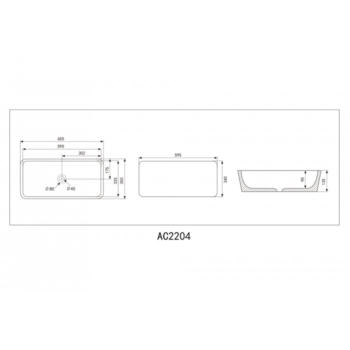 Раковина накладная ABBER Rechteck AC2204 белая Германия 10 лет прямоугольная керамика накладная