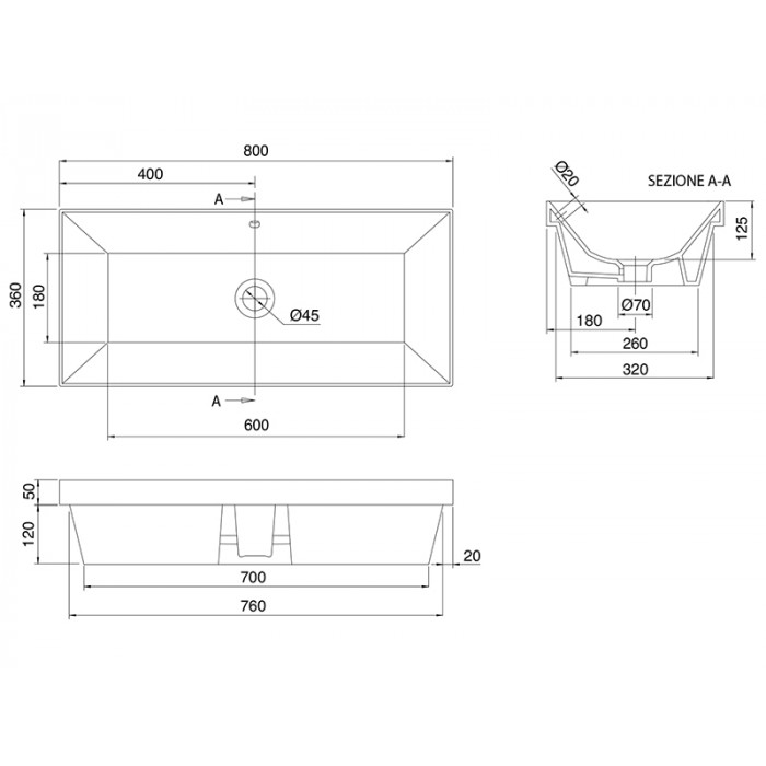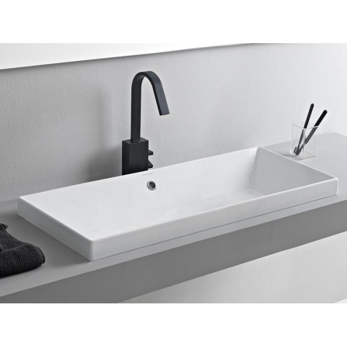 SCARABEO TEOREMA 2.0 5132 Раковина встраиваемая с сливом-переливом, без отверстия под смеситель. Размеры: 80x36x17h см. Высота борта раковины над столешницей 5см. Цвет White.