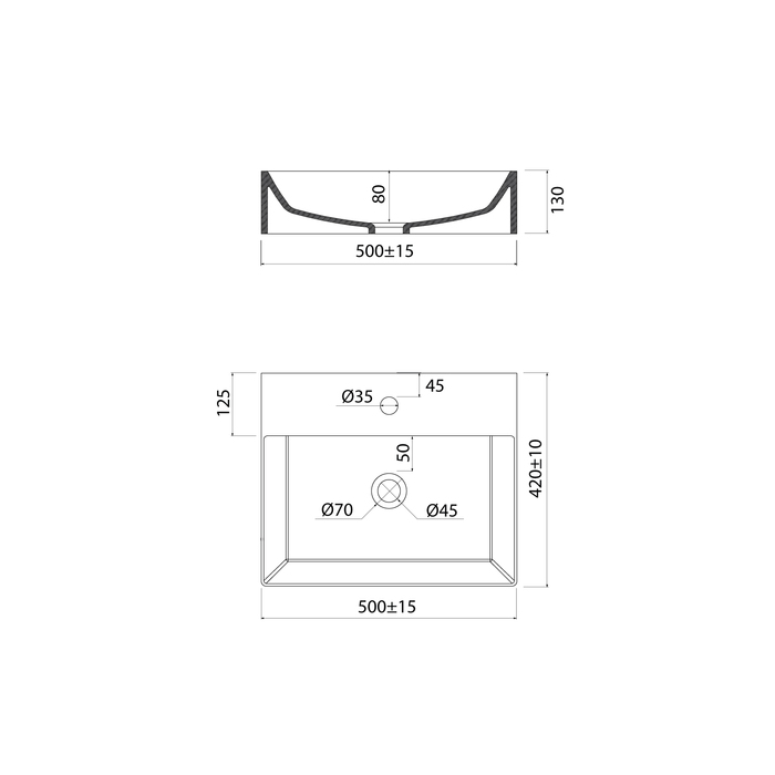 Полочка на раковине – специальная утолщённая площадка (не просто отверстие в тонком бортике), предназначенная для монтажа стандартного смесителя. Не нужно искать специальную модель для накладного умывальника, подойдет большинство смесителей, представленных на рынке.