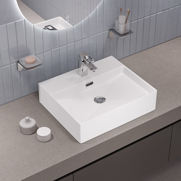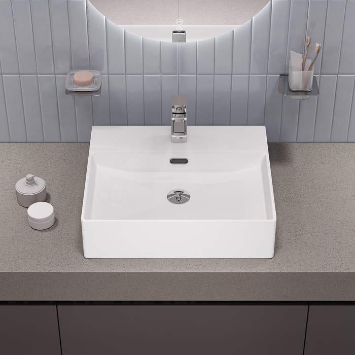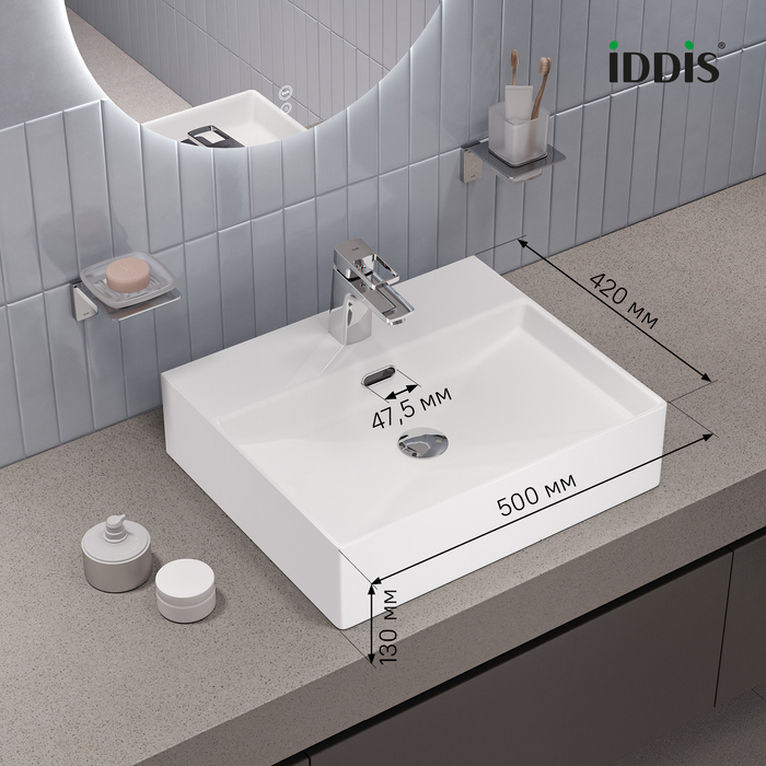 Умывальник накладной/подвесной, белый глянцевый, Bild, IDDIS, BILWS50i27 Стильный умывальник Bild для ванной комнаты актуального лаконичного дизайна с удобной полочкой подойдёт к любому современному интерьеру. Размер 500х420х130 мм. Два варианта установки: подвесной и настольный.