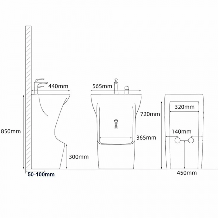 Комплект 2 в 1 раковина для омовения SantiLine SL-4030 глянцевый белый