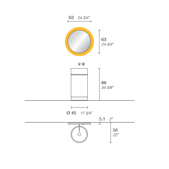 Раковина напольная Milldue ROMA 2017.C NOORTH milldue edition ROMA II Раковина напольная Ø450x880 мм., слив в пол, основ Rovere Nero, корпус Noce Canaletto, вставка Oro, раковина Nero opaco