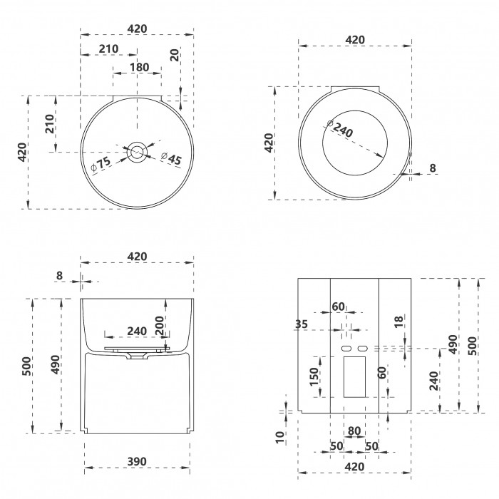 Раковина подвесная ABBER Stein AS2624 белая матовая Германия 5 лет круглая искусственный камень подвесная