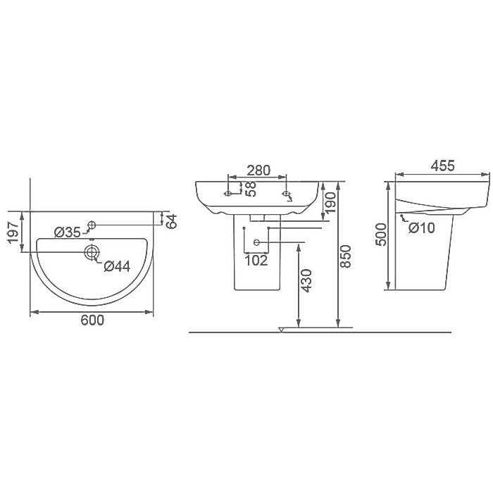 Раковина с полупьедесталом 60х45см Creo Ceramique RENNES RE3000+RE3050 керамика, белый глянцевый