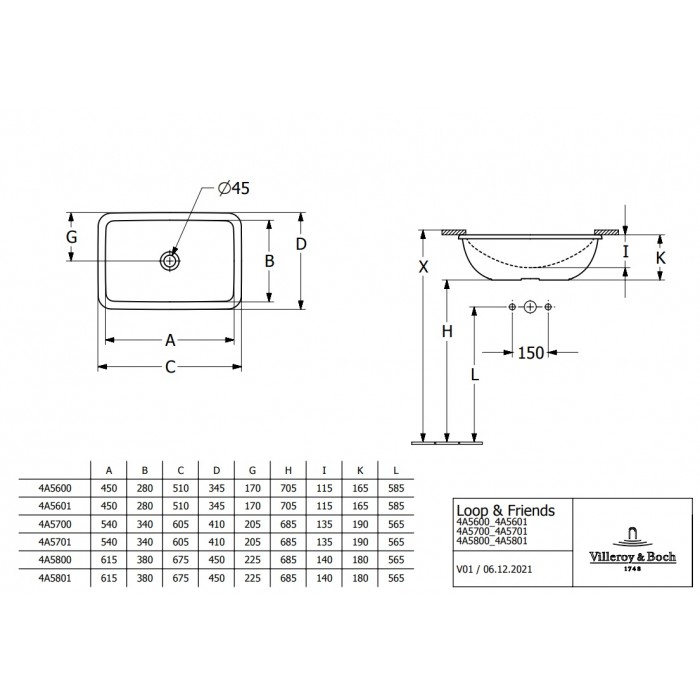 Раковина для установки под столешницу 61х38 см Villeroy&Boch Loop&Friends 4A580101