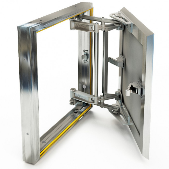 Люк под плитку Хаммер Слава 60/40 (ш/в) Ревизионный люк Алюминий Люк в сборе - 1 шт, паспорт – 1шт, этикетка–инструкция – 1шт, ключ торцевой шестигранный - 1 шт, при Россия Люк под плитку Хаммер Слава 60/40 (ш/в) Ревизионный алюминиевый люк модели Слава шириной 60 см и высотой 40 см с усиленной конструкцией для установки в стены с последующей облицовкой плиткой, керамогранитом, мозаикой. Внимание! Расстояние от края люка со стороны петель до угла стены не должно быть меньше 80 мм. Люк не устанавливается вплотную к внутренним углам стен, так как дверца имеет фиксированный ход и при открывании уходит в сторону от проёма. Изделие имеет мощную раму с усиленными петлями и модернизированные защелки-выталкиватели. Уникальным решением конструкции люка является "умная петля". При нажатии на середину люка дверца выдвигается вперёд на 15-20 мм, затем, при открывании, движется в сторону по траектории направляющих петель, исключая скалывание плитки о стены, которое возможно у люков, оснащённых только двухзвенной петлёй. Применяется в помещениях с повышенной влажностью благодаря наличию влаго, пыле, шумоизолирующего резинового уплотнителя и влагостойкого ГВЛВ. Ещё одним из достоинств люка является оклеивание отделочным мате