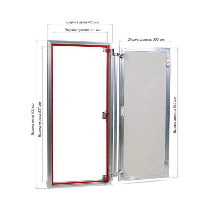 Нажимной люк АТР 40-90, с шириной 400 мм и высотой 900 мм, предназначен для доступа к водонагревателю, к счётчикам учёта, к шаровым кранам, к водяным фильтрам.