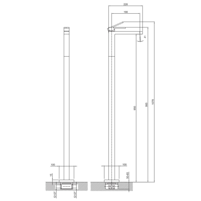 Смеситель для раковины Fantini AR/38 38 02 3336SB Хром Fantini AR/38 Смеситель для раковины, напольный, без донного клапана, излив 190мм, (наружняя часть) цвет: хром