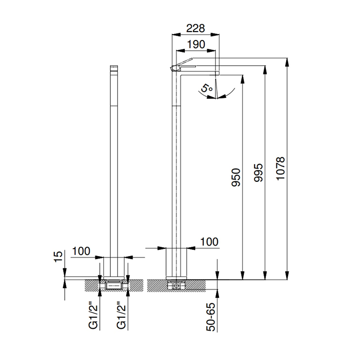 Смеситель для раковины Fantini Mint 34 13 F036B Черный матовый FANTINI MINT Смеситель для раковины, напольный, внешняя часть, цвет черный матовый