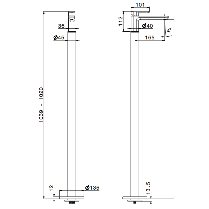 Смеситель для раковины Newform Haka 72018E.59.064 Gun metal Newform Haka Внешняя часть отдельностоящего смесителя для раковины, цвет: PVD brushed gun metal