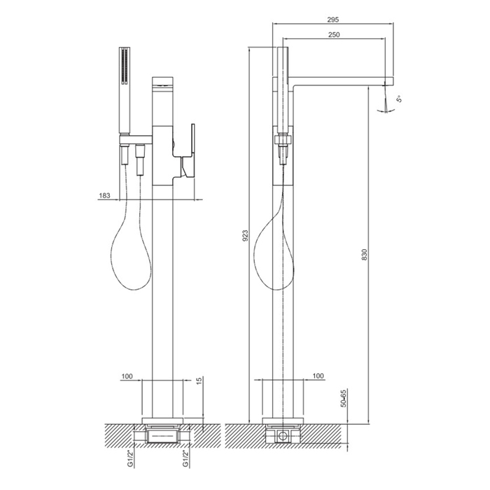 Смеситель для ванны Fantini AR/38 38 02 3380SB Хром Fantini AR/38 Смеситель для ванны, напольный, с ручн душем, излив 250мм, (наружняя часть), цвет: хром