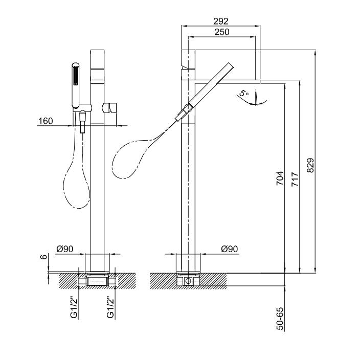 Смеситель для ванны Fantini Milano 31 93 3080B Матовая сталь Fantini Milano Смеситель для ванны, напольный, с ручн душем, излив 250мм, (наружняя часть), цвет: матовая натуральная сталь
