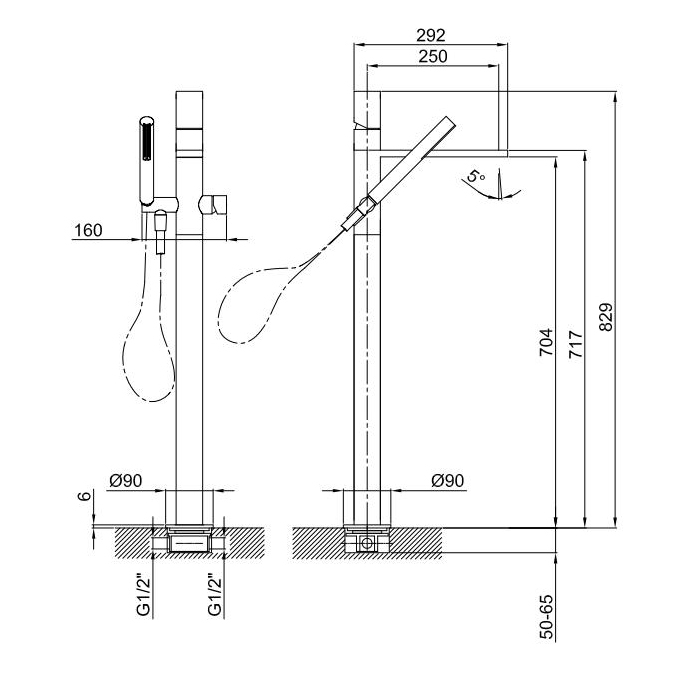 Смеситель для ванны Fantini Milano 31 P5 3080B Gun metal Fantini Milano Смеситель для ванны, напольный, с ручн душем, излив 250мм, (наружняя часть), цвет: Matt Gun Metal PVD