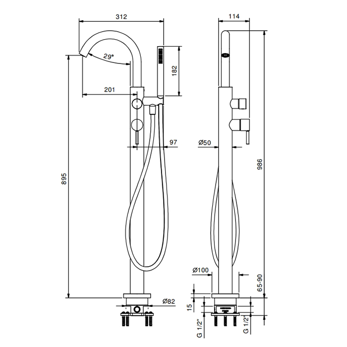 Смеситель для ванны Fantini Nostromo 50 P6 E880B Золото FANTINI NOSTROMO Смеситель для ванны напольный, излив 201 мм, внешняя часть, цвет Matt British Gold PVD