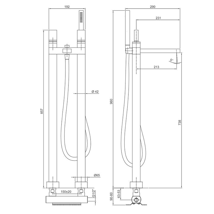 Смеситель для ванны Fantini Venezia In 29 95 N580SB Никель Fantini Venezia In Смеситель для ванны, напольный, с ручн душем, излив 215мм, (наружняя часть), цвет: Nickel PVD