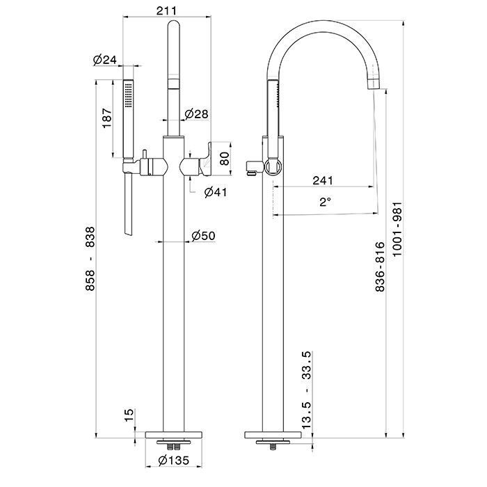Смеситель для ванны Newform Linfa II 69484E.21.018 Хром