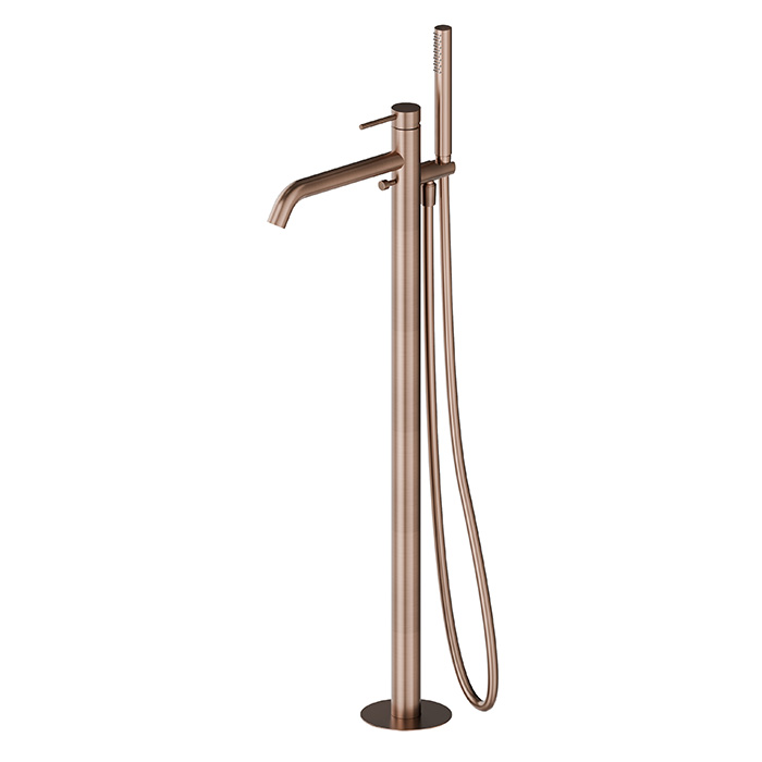 Смеситель для ванны Newform X-Steel 316 69684EX.59.067 Медь Newform X-Steel 316 Смеситель для ванны напольный, излив 243 мм, в компл: руч. душ, шланг, без встр. части, (для 27819) цвет: PVD Brushed copper bronz