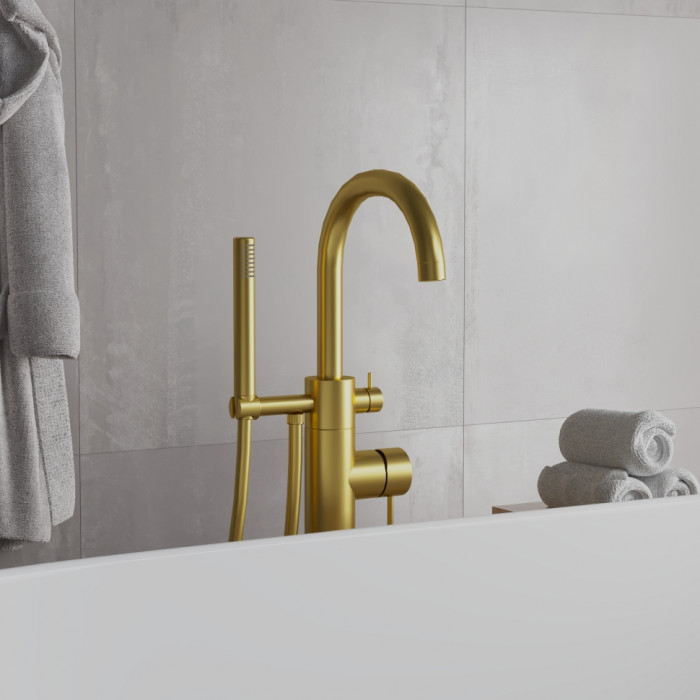 Смеситель напольный PAINI Cox для ванны поворотный излив, брашированное золото PVD 78PJ136LM