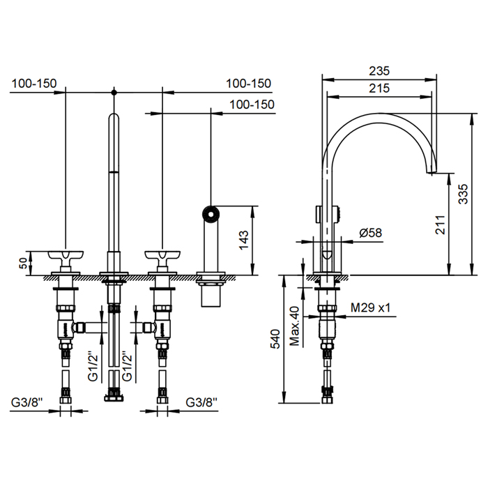 Смеситель для кухни Fantini Icona Classic 53 02 R051 Хром Fantini Icona Classic Смеситель для кухни, 4 отв, без донного клапана, излив 215мм, с ручн душем, цвет: хром