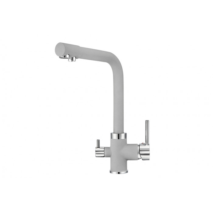 Смеситель для кухни GRANULA 2015, СЛАНЕЦ Смеситель для кухонной мойки Granula 2015 изготовлен из высококачественного материала. Латунный корпус обеспечивает длительный срок службы. При этом высокий излив позволяет мыть как мелкую, так и крупногабаритную посуду. Двухрычажная модель смесителя Granula 2015 выполнена с краном для питьевой воды. Фильтрованная вода подается по отдельной трубке и не смешивается с водопроводной водой. Покупателям предлагаются различные типы смесителей, окрашенные в тон моек Granula и StandART. Все модели смесителей для кухонных моек во всех цветах Вы можете посмотреть и приобрести на нашем сайте или в наших представительствах в регионах.Если у Вас остались вопросы, обращайтесь к нашим консультантам Высокий Двухрычажный Хром Латунь 365x275x60 РОССИЯ Корпус 5 лет, покрытие 2 года, картридж 1 год, резиновые прокладки 6 мес., гибкая подводка 6 мес. Гибкая подводка, комплект креплений, переходник для подключения фильтра с питьевой водой