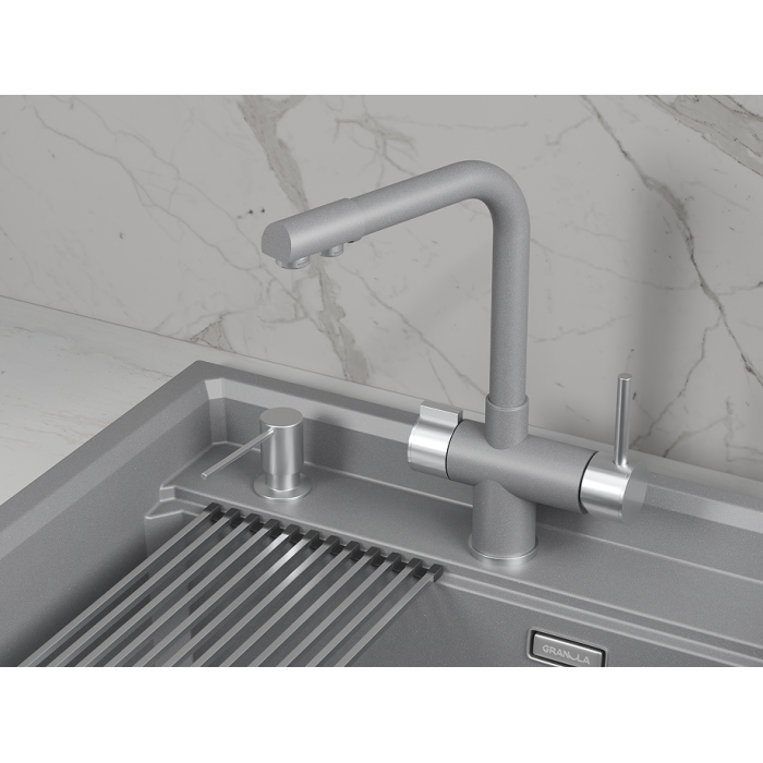 Смеситель для кухни GRANULA 5008, ЧЁРНЫЙ Высокий Двухрычажный Нержавеющая сталь Нержавеющая сталь 445х325х70 РОССИЯ Корпус 5 лет, покрытие 2 года, картридж 1 год, резиновые прокладки 6 мес., гибкая подводка 6 мес. Гибкая подводка, комплект креплений, переходник для подключения фильтра с пиьевой водой