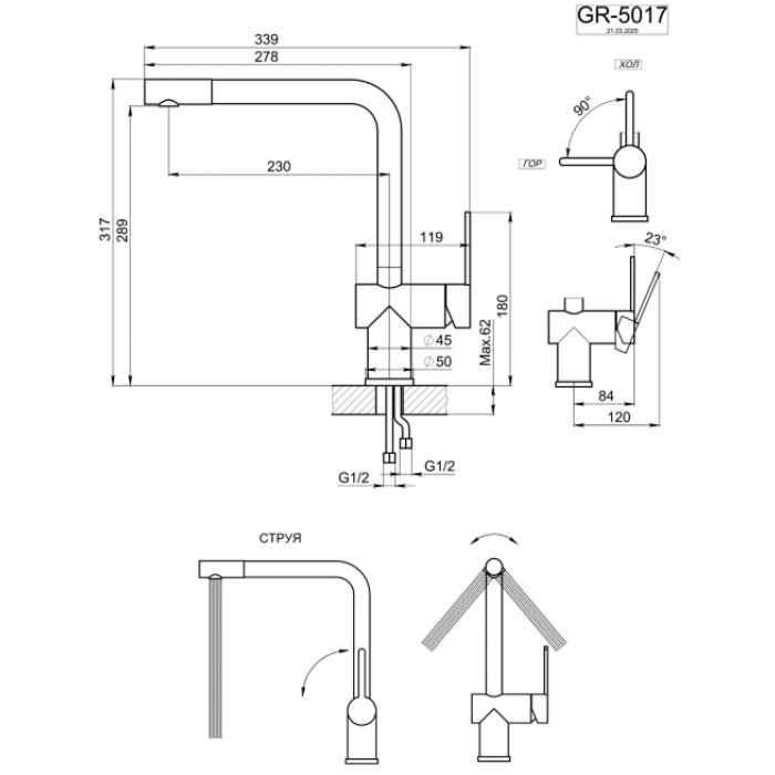Смеситель для кухни GRANULA 5017, ПИРИТ