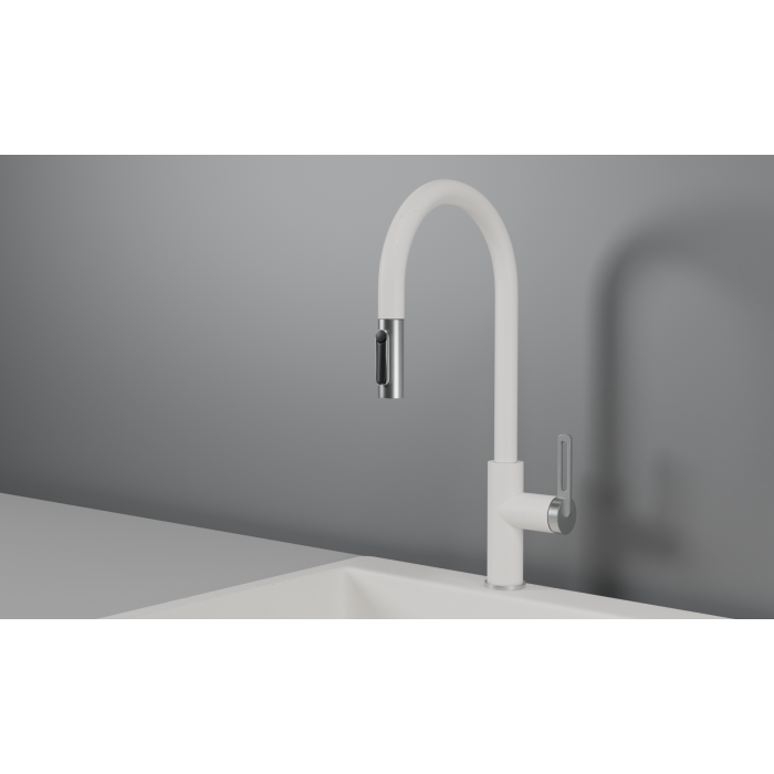 Смеситель для кухни GRANULA GR-8168, АРКТИК, С ВЫДВИЖНЫМ ИЗЛИВОМ