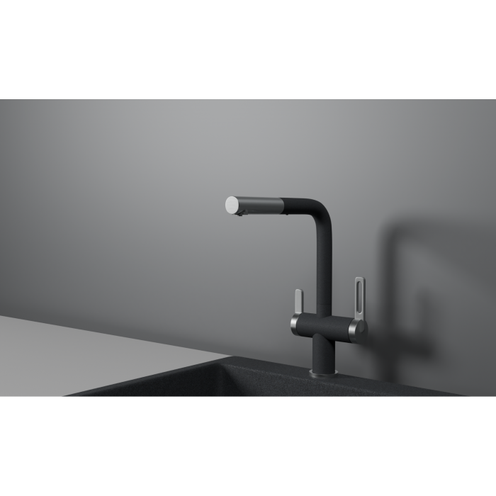 Смеситель для кухни GRANULA GR-8170, ГРАФИТ, С ВЫДВИЖНЫМ ИЗЛИВОМ Смеситель для кухни с выдвижным изливом и подключением к фильтру от российского бренда Granula.
