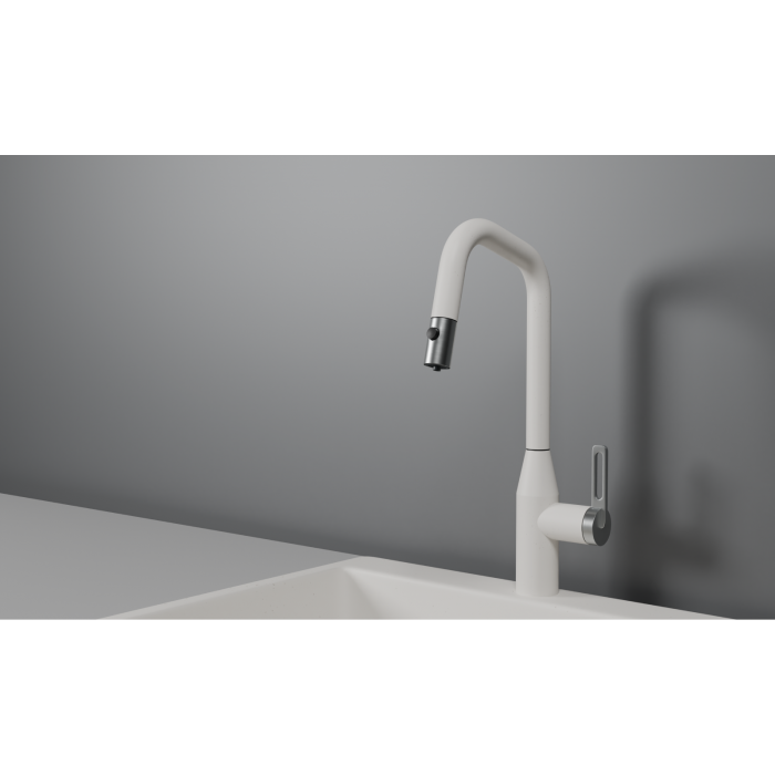Смеситель для кухни GRANULA GR-8171, АРКТИК (БЕЛЫЙ), С ВЫДВИЖНЫМ ИЗЛИВОМ