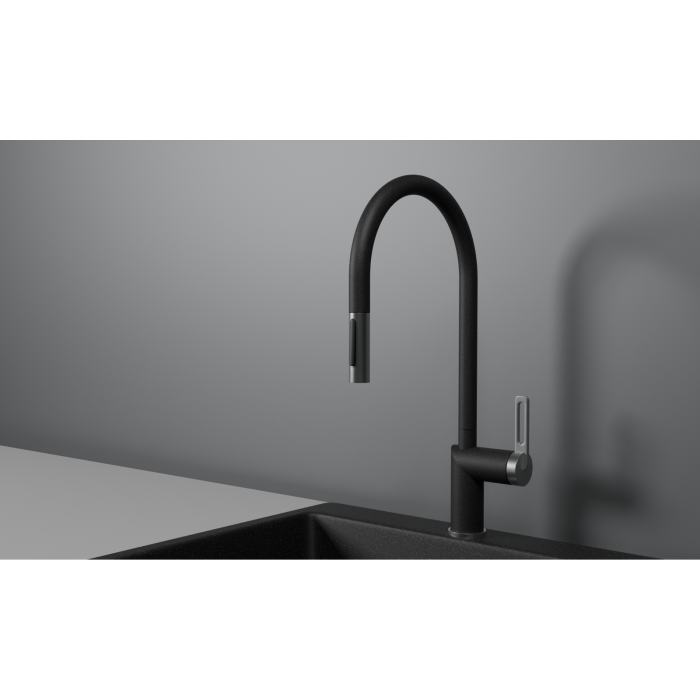 Смеситель для кухни GRANULA GR-8172, ЧЕРНЫЙ, С ВЫДВИЖНЫМ ИЗЛИВОМ
