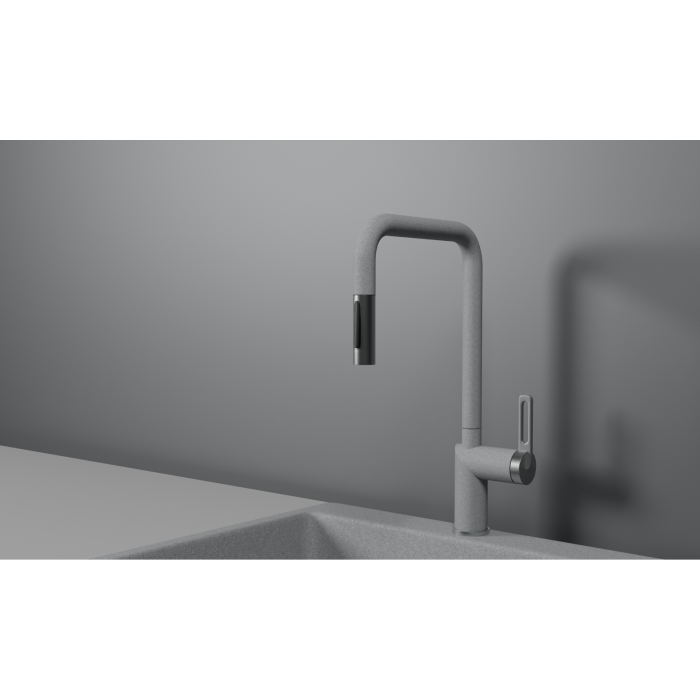 Смеситель для кухни GRANULA GR-8173, БАЗАЛЬТ, С ВЫДВИЖНЫМ ИЗЛИВОМ