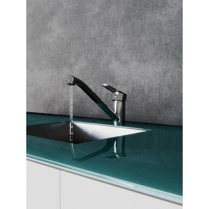 Размер чаши мойки впечатлил, очень удобно, исполнение отличное,цвет алюметаллик подошёл нам идеально, заказала такой же смеситель