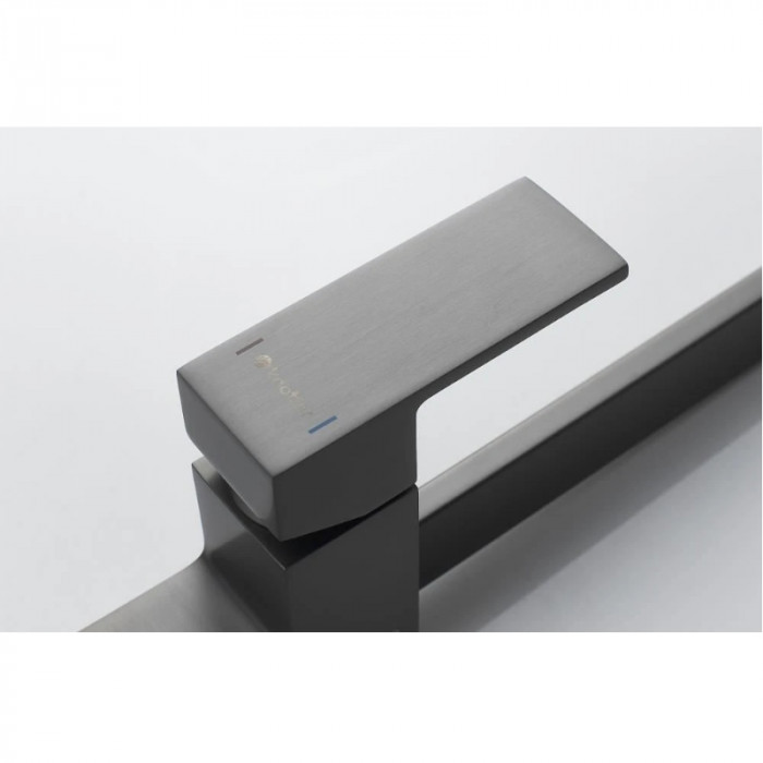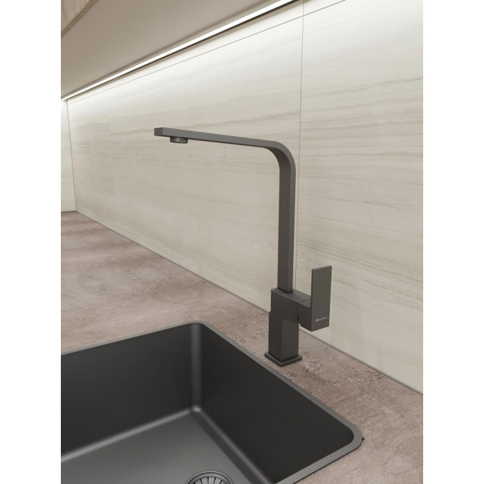 Выглядит стильно, матовый черный не маркий. Ход рычага плавный, напор регулируется точно. Из минусов - тяжёлый, пришлось аккуратно подтягивать крепеж.