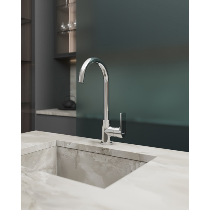 Размер чаши мойки впечатлил, очень удобно, исполнение отличное,цвет алюметаллик подошёл нам идеально, заказала такой же смеситель