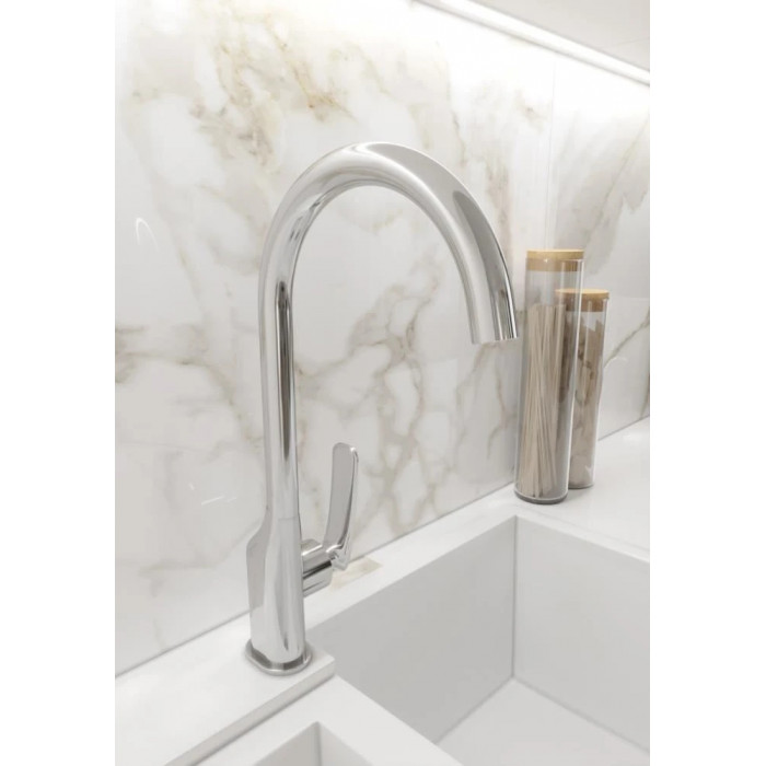 Размер чаши мойки впечатлил, очень удобно, исполнение отличное,цвет алюметаллик подошёл нам идеально, заказала такой же смеситель