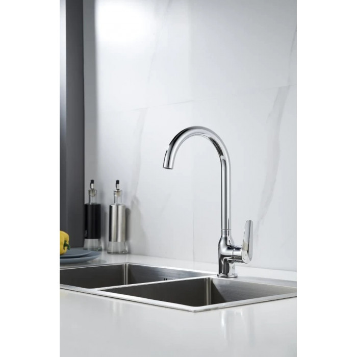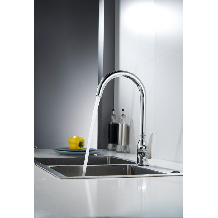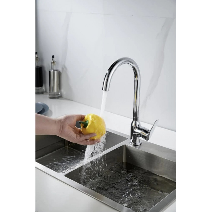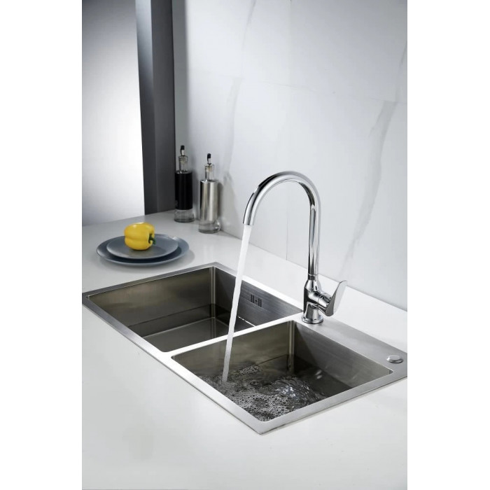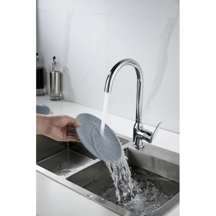 Размер чаши мойки впечатлил, очень удобно, исполнение отличное,цвет алюметаллик подошёл нам идеально, заказала такой же смеситель