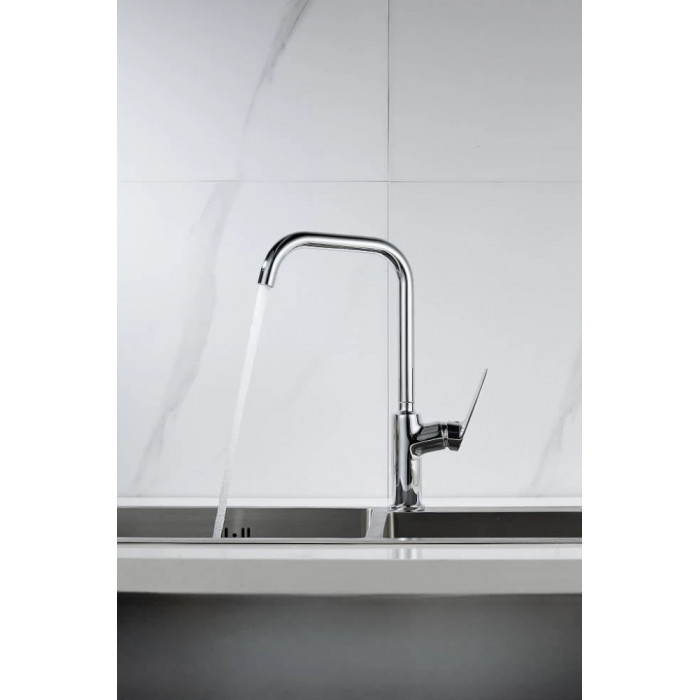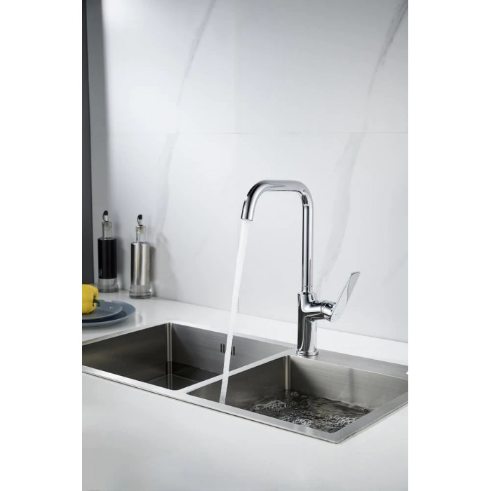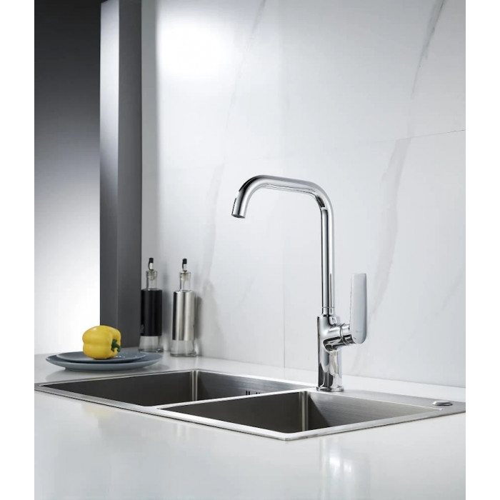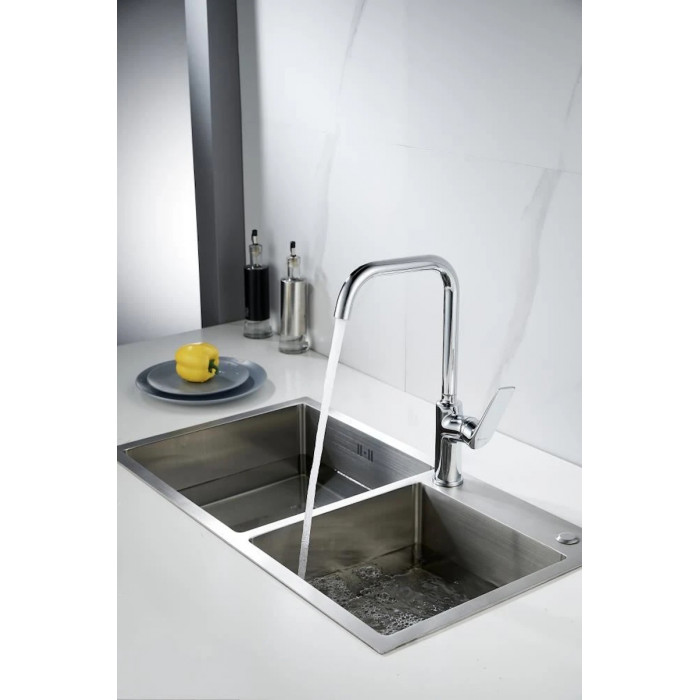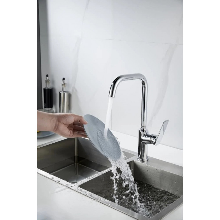 Размер чаши мойки впечатлил, очень удобно, исполнение отличное,цвет алюметаллик подошёл нам идеально, заказала такой же смеситель