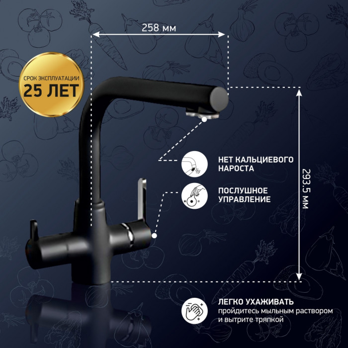 Смеситель для кухни PAINI Arena на 3 воды, черный (YO) 92446433VE7B90DALMKM