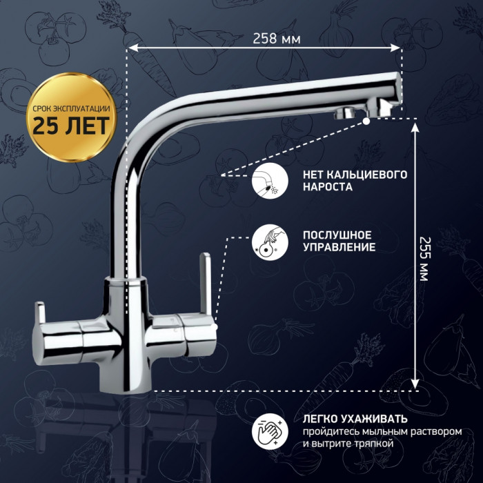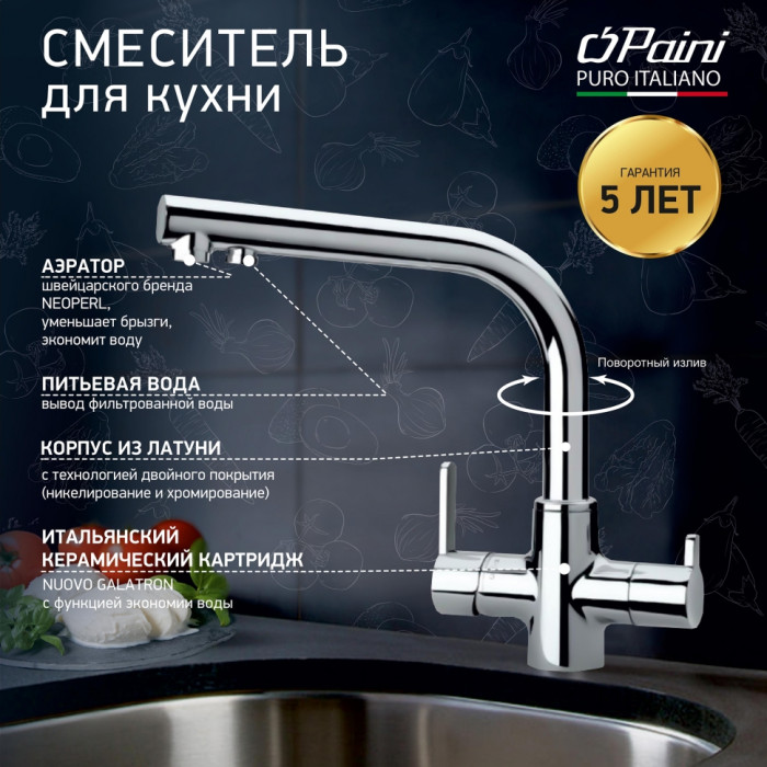 Смеситель для кухни PAINI Arena на 3 воды, хром (CR) 92CR6433VEB90DAKM смеситель для кухни Paini Италия