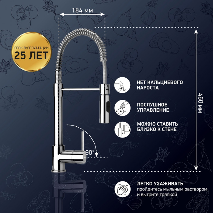 Смеситель для кухни PAINI Cox гибкий излив, хром (CR) 78CR557PEKM смеситель для кухни Paini Италия